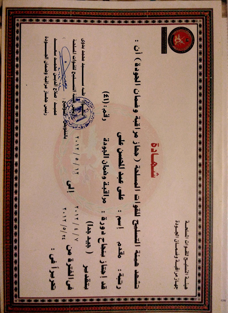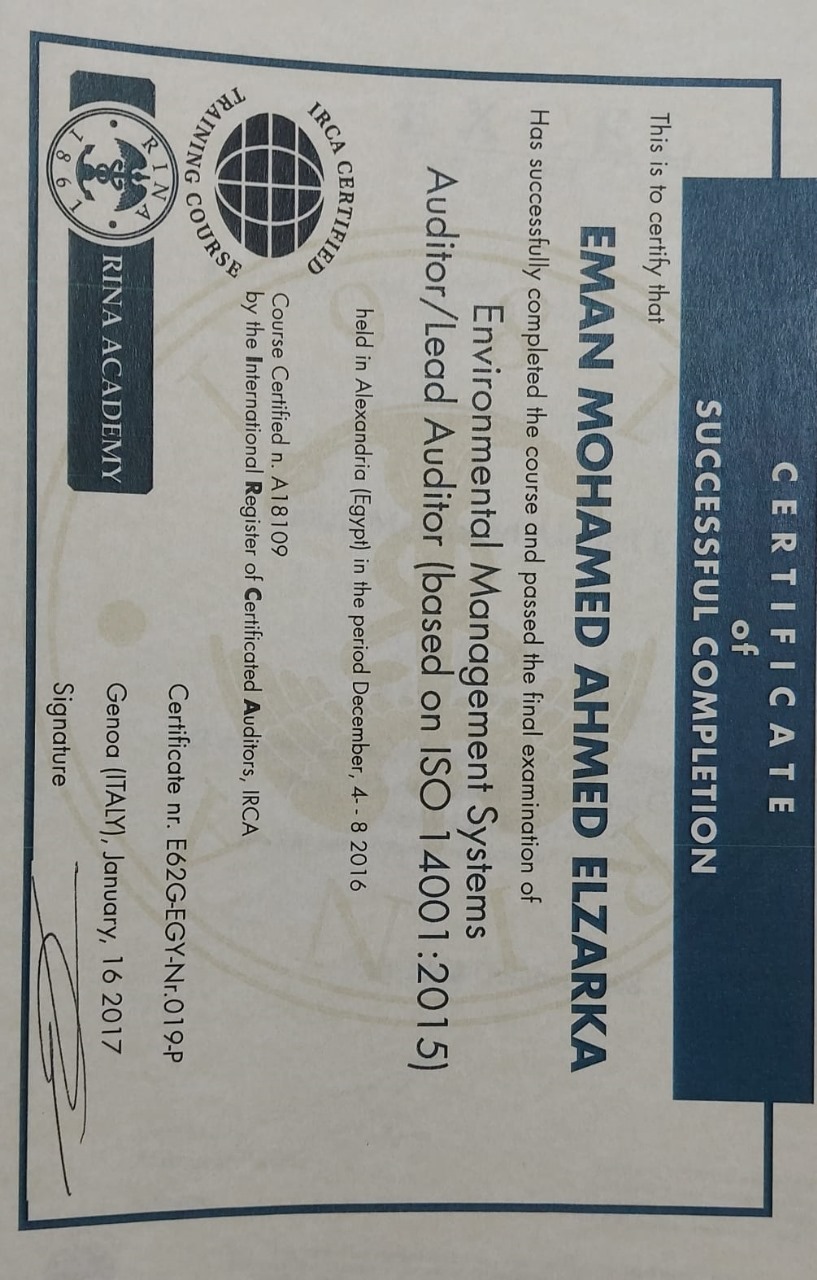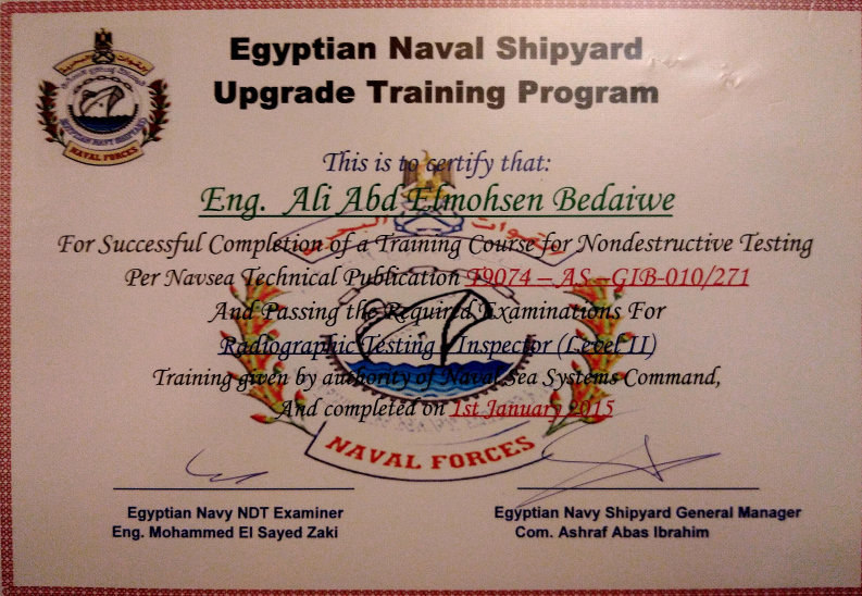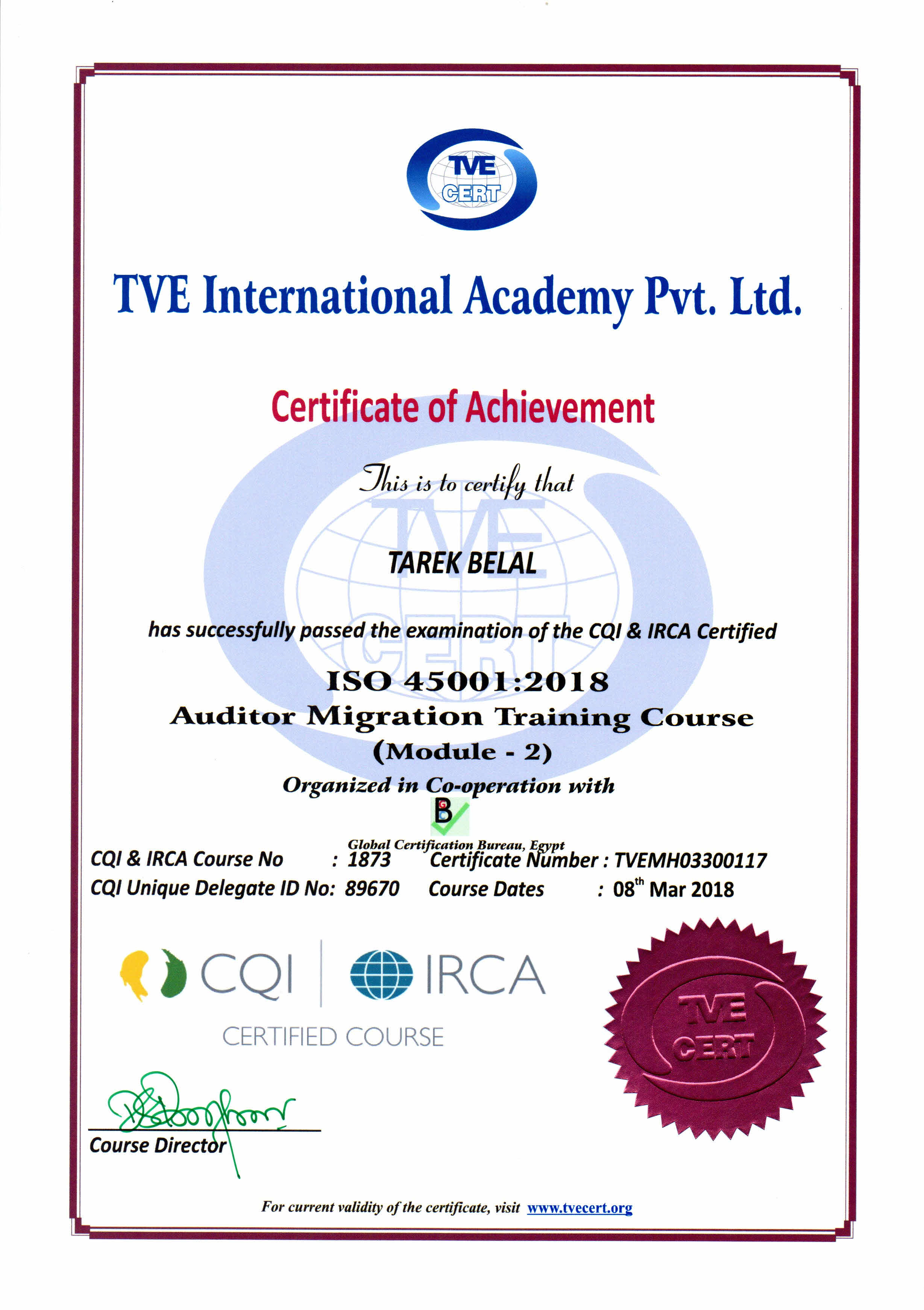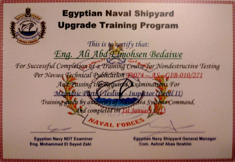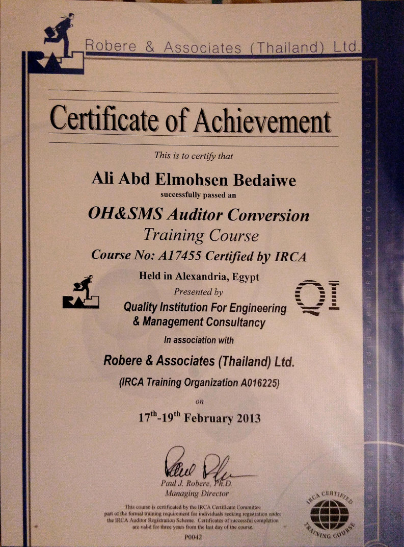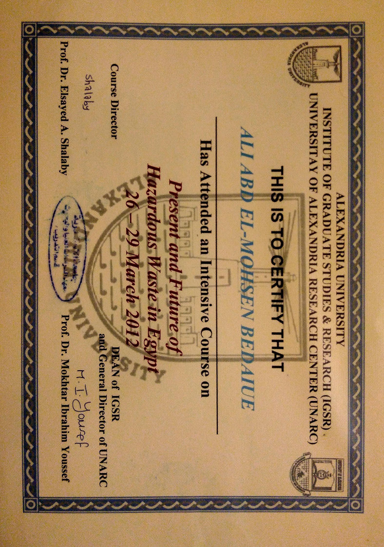 | 26 | Samir Sherif Ibrahim El Sherbiny | Certification |