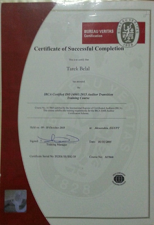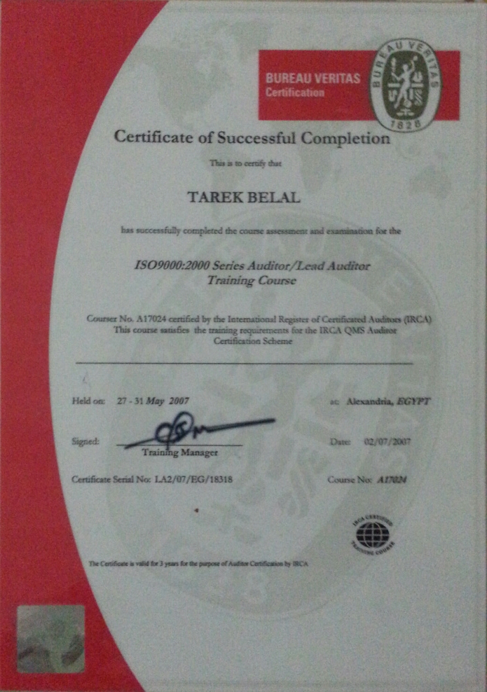 | 32 | Wael Abou Hashem Azab Moussa | Certification | Auditor | Freelancer | 01095095643 | waelhashem55@yahoo.com | Download | No Certificates | Print Contract | Edit |