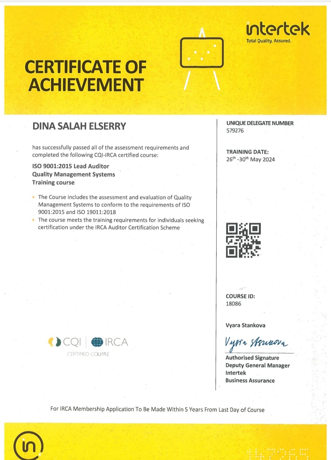 | 14 | Lobna Abdelfatah Ahmed Afifi | Certification | Lead Auditor | Freelancer | 0100231875 | toaaboda@yahoo.com | Download | View | Print Contract | Edit |